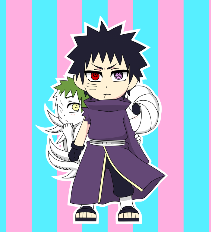 SD風オビトくんとぐるぐるちゃんと白ゼツちゃんです。
